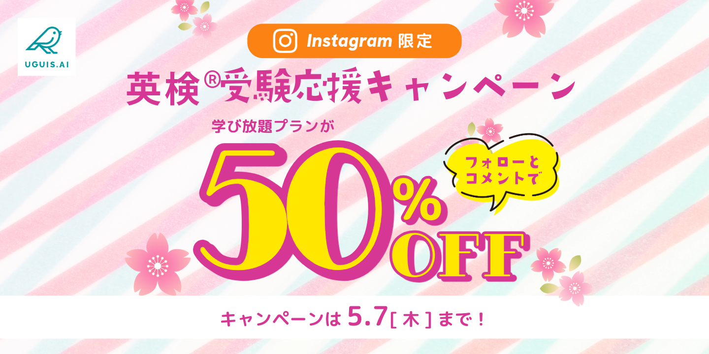 【50%OFF】英検®受験を応援!Instagramキャンペーン(4/10)